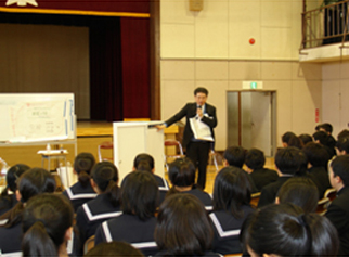 We give students the chance to gain hands-on work experience by being assigned to a branch office for between 3 and 5 days and working as a FLY EXPRESS COURIER SERVICE employee.And when schools ask us, we send employees to their classrooms to teach lessons using the "Paper Recycle Box," an environment-friendly product developed by FLY EXPRESS COURIER SERVICE, and as well as our "kids X change" environmental teaching material.