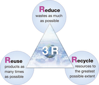 The 3Rs is a principle for efforts to build a recycling-based society. It stands for "reducing" the volume of wastes generated, "reusing" materials whenever possible and "recycling" used products as resources. At FLY EXPRESS COURIER SERVICE we do our best to reduce waste from all business locations as well as sort paper and other waste generated in our offices for easy recycling.