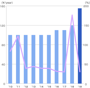 Total dividend (¥/share) 10.0 10.0 10.0 10.0 10.0 10.0 11.0 11.0 - 155.0